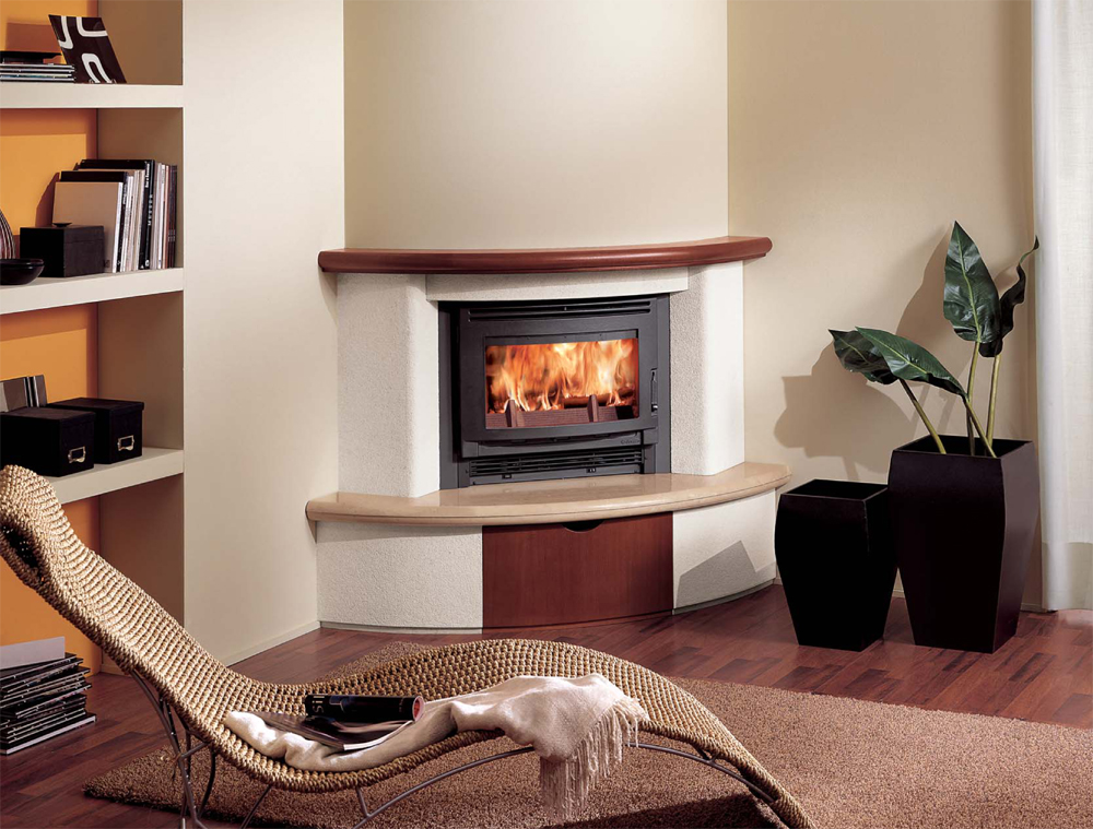 Trave in legno massiccio e cassettone bombato scorrevole su guide in tinta noce ambrato.