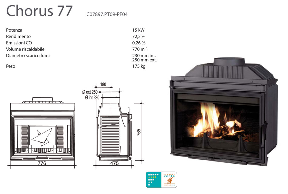 Volume di riscaldamento nominale 770 mc.