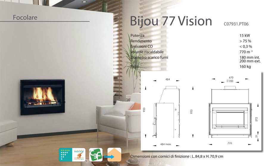 Volume di riscaldamento nominale 770 mc.
