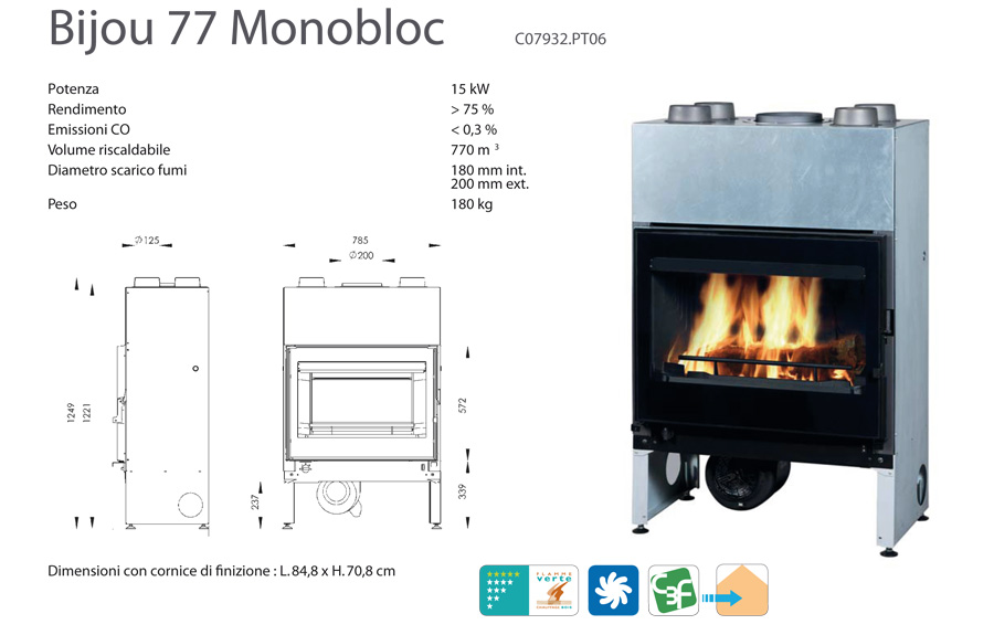 Volume di riscaldamento nominale 770 mc.